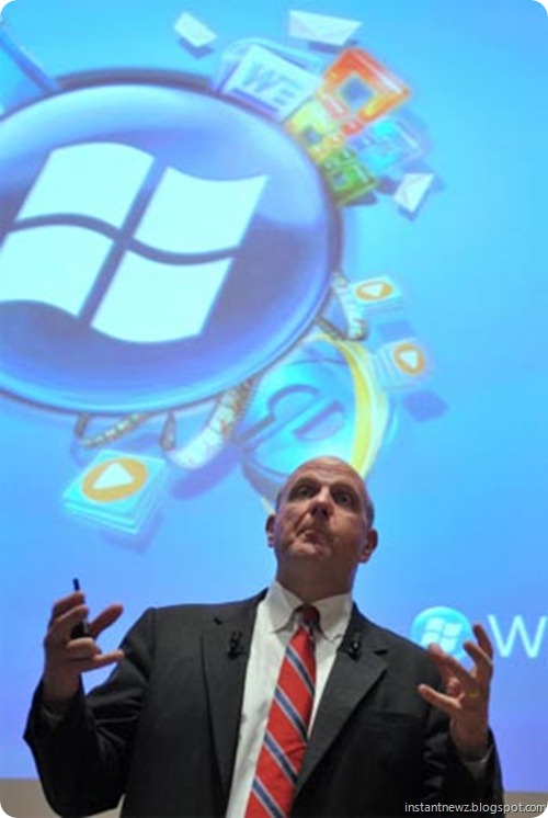 Microsoft chief executive Steve Ballmer gives a press conference on October 6, 2009 in Paris to launch the Windows phone. Microsoft, seeking to tap into the rapidly growing smartphone market, launches new cellphones featuring a redesigned Web browser and a free service called 'My Phone', which allows users to back up contacts, messages and photos on a personal computer or the Internet. AFP